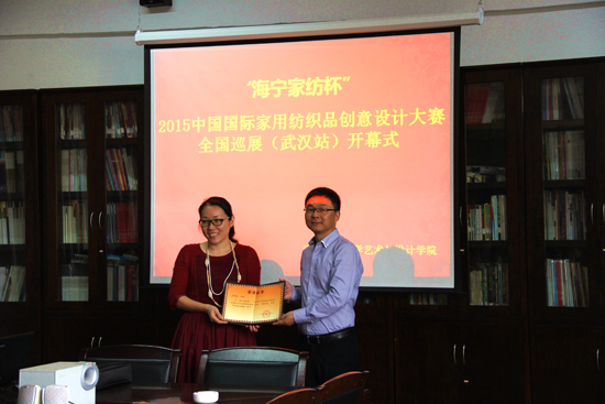 10月26日上午,“海宁家纺杯”2015中国国际家纺设计大赛巡回展(武汉站)在公司南湖校区艺术楼一楼展厅盛大开幕。本次论坛邀请了众多业界专家,清华大学美术公司教授,博士生导师贾京生、中国高级家纺设计师、高级工艺美术师王福文、海宁市许村镇副镇长殷晓鸿、中国家纺协会代表赵林以及永利yl23411官网经理欧阳巨波。论坛由永利yl23411官网李万军副经理主持。
