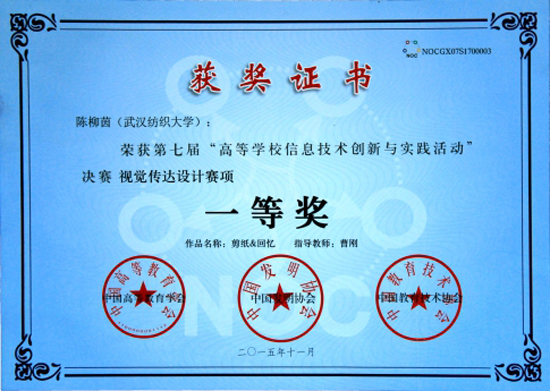 自6月接到公司通知,永利yl23411官网认真组织相关专业备战本次比赛。最终永利yl23411官网视传专业研究生陈柳茵凭着作品《剪纸&回忆》通过了湖北省决赛答辩并推荐参加全国总决赛,经过专家评审、陈述答辩等环节的激烈角逐,陈柳茵不负众望荣获视觉传达设计比赛项目全国一等奖,曹刚老师荣获第七届高等公司信息技术创新与实践活动优秀指导教师奖。