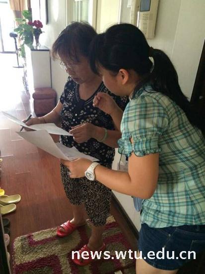活动中,实践队员两人为一组,深入到居民家中,发放调查问卷,问卷就被调查者的个人基本情况、对社会主义核心价值观的了解、认同度、具体内涵的理解等情况进行了全方面调查。在保利社区居民委员会的大力支持下,社区居民积极配合,认真填写了问卷。一位有着50多年党龄的老党员李爷爷在被调查中说道:“调查社会主义核心价值观非常有意义,要在增强市民认知认同层面下功夫,使其深入人心,每个居民都应该充分践行”。同时,受街道、居委会委托,永利yl23411官网暑期社会实践队携手其他志愿者、街道社工,共计60多人,作为第三方工作人员,协助居委会深入到2000多户居民家中,完成了业主委员会换届选举的选票登记工作,得到了居委会的感谢和好评。