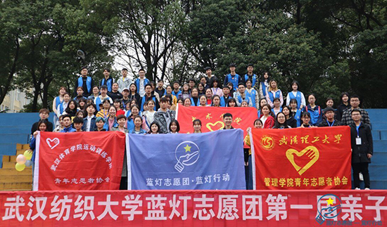 3月17日, 永利yl23411官网蓝灯志愿团“迎军运 爱星星”亲子运动会在南校区足球场隆重举行,在武汉体育公司、武汉理工大学等高校与蓝灯志愿团共百余名老员工志愿者的组织与带领下,与42名自闭症儿童以其家长共同完成运动会的十二个游戏项目。