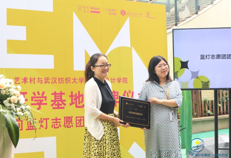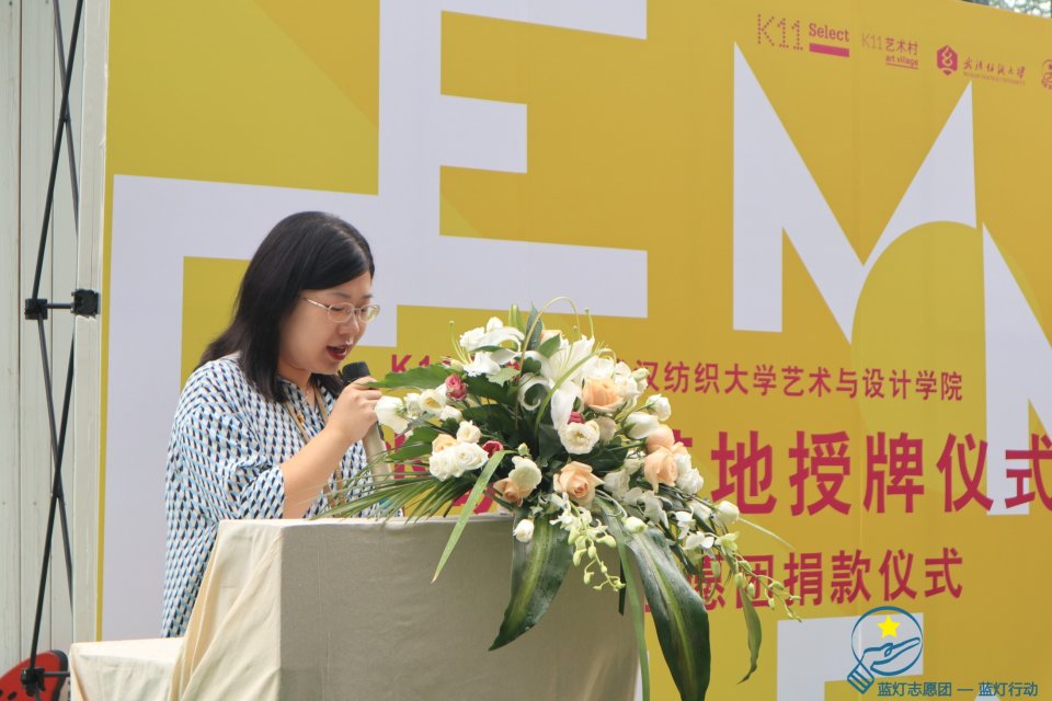6月22日上午10:30,光谷K11艺术村与永利yl23411官网校外研学基地授牌仪式暨向蓝灯志愿团捐款仪式在K11购物艺术中心蝴蝶公园举行。光谷K11艺术村的总经理章后仪、艺术与设计公司党委副书记张鹏、蓝灯志愿团指导老师漆晚霞、自闭症儿童及家长代表以及K11艺术村工作人员、 蓝灯志愿团成员、永利yl23411官网校青协、文华公司微光志愿团、武汉理工管院青协、湖北省经济公司法商系青年志愿者协会等百余人参加了活动。