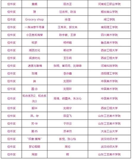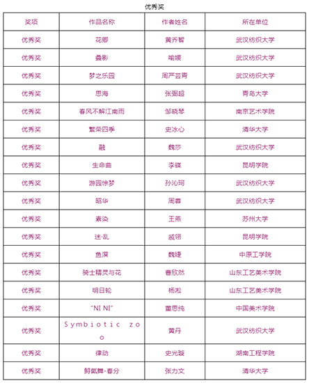 由永利yl23411官网及山东工艺美术公司、烟台市福山区人民政府、烟台明远家用纺织品有限公司、山东省省委民营企业高质量发展烟台服务二队共同承办的国际性赛事——“明远杯·国际家居纺织品创意设计大赛”大赛阶段圆满结束,下一步大赛即将进入“工作坊”阶段,现将大赛阶段的获奖名单公布如下: