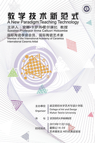 安娜教授围绕如何将新技术融入到传统陶艺课程以及如何运用数字技术辅助设计造型等方面进行了讲演,这些创作陶艺作品的方法新颖丰富,引起了师生们的广泛讨论和提问。随后,安娜教授分别介绍了陶艺课程中的新技术的使用规范、数字技术与课程实践相结合的经验等等。她强调,我们这些将新技术融入传统陶艺课程的人,常常觉得自己是在一个未知的领域旅行。安娜教授从技术、工艺等角度阐释了陶艺中混合材料的使用,提到了陶艺作品的实用功能及审美功能,安娜教授结合自己的观点,对此进行了深入剖析。讲座结束后,同学们抓住难得的机会向安娜教授请教陶艺数字技术使用的相关问题,现场气氛十分活跃。