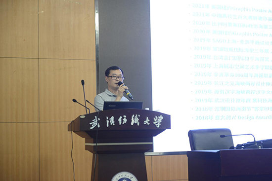 讲座分别以“设计赛事·心得分享”、“与设计相关:之设计习惯”、“视觉造境:数媒艺术与平面设计交融后的新范型”为主题展开,内容主要包括:对国际海报赛事的心得分享、对设计习惯的探讨、新形势下设计专业跨学科意识的重要性。