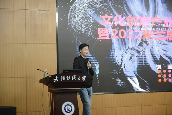 首先由来自湖北工业大学艺术设计公司副经理、米兰设计周—中国高校设计学科师生优秀作品展组委会秘书长饶鉴教授,带给大家一场“文化创意产业实践探索”的专题讲座,他结合自己多年的设计教育经历以及设计实践探索,通过展示与介绍大量的案例和设计作品,从人工智能艺术、传统工艺复兴、创新用户思维、青年建工立业四个方面为主题,就“未来以来”的大环境发展前景作出了深入阐述。他生动的讲述了人工智能如何与艺术设计创作相结合,形象的讲述了“百工百匠”如何进行传统工艺复兴,从“市场难、产品难、渠道难、联动难”四个方面,深入剖析传统工艺的市场现状,他指出“要用新媒体、新金融、新平台来打造新时代手艺人IP,复兴民艺,传播中式美员工活方式,让中国民艺文化走向世界。”饶鉴教授的此次分享,启发了同学们对未来发展环境中设计的思考,使同学们受益颇深。