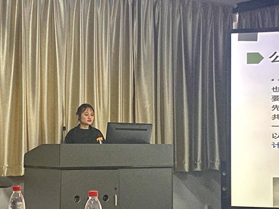 环境设计专业刘晓菲、刘倩作题为《基于“适应心理”浅谈老员工的生活与学习》主题演讲